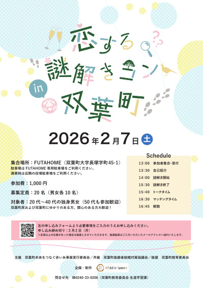 ふたこんイベント「恋する謎解きコンin双葉町」を開催します。