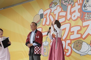 10月4日と5日の二日間、双葉町産業交流センター前において「ふたばフードフェス2025」を開催しました。伊澤町長は開会式で「このイベントをきっかけに、双葉町の現状を知り、魅力を感じていただくことで、更なる交流人口の拡大に寄与するものと信じております。」とあいさつしました。