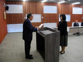 10月6日、再任された山本眞理子さん(下条)に伊澤町長が委嘱状を交付しました。
