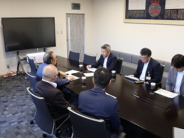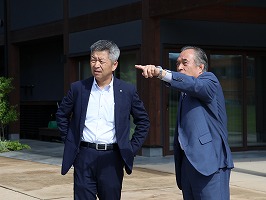 10月15日、職員を派遣していただいている長野県松川町北沢町長が来町されしました。伊澤町長から北沢町長に職員派遣への感謝の言葉を述べ、震災からこれまでの復興の歩みを説明し、町内を案内しました。